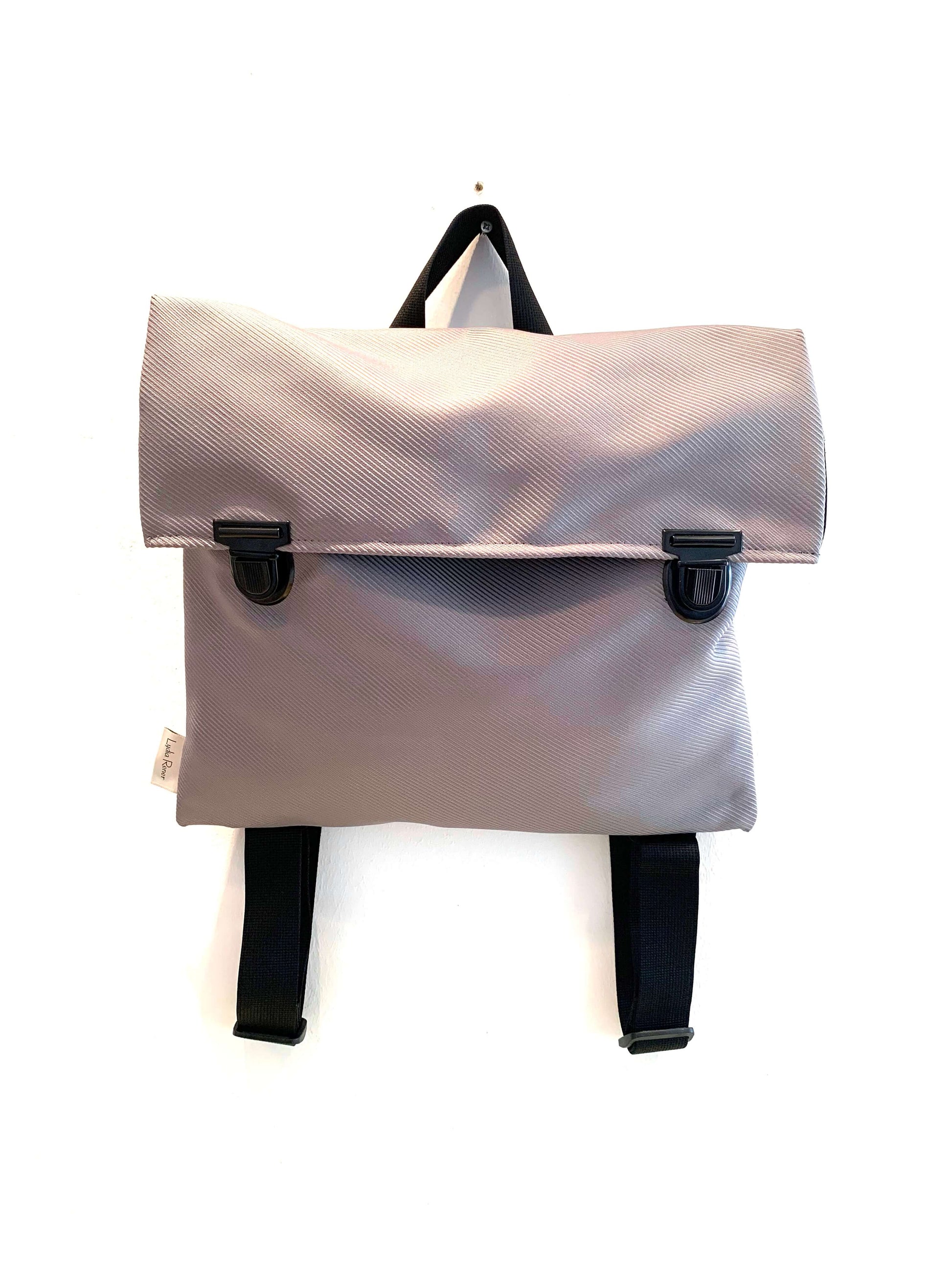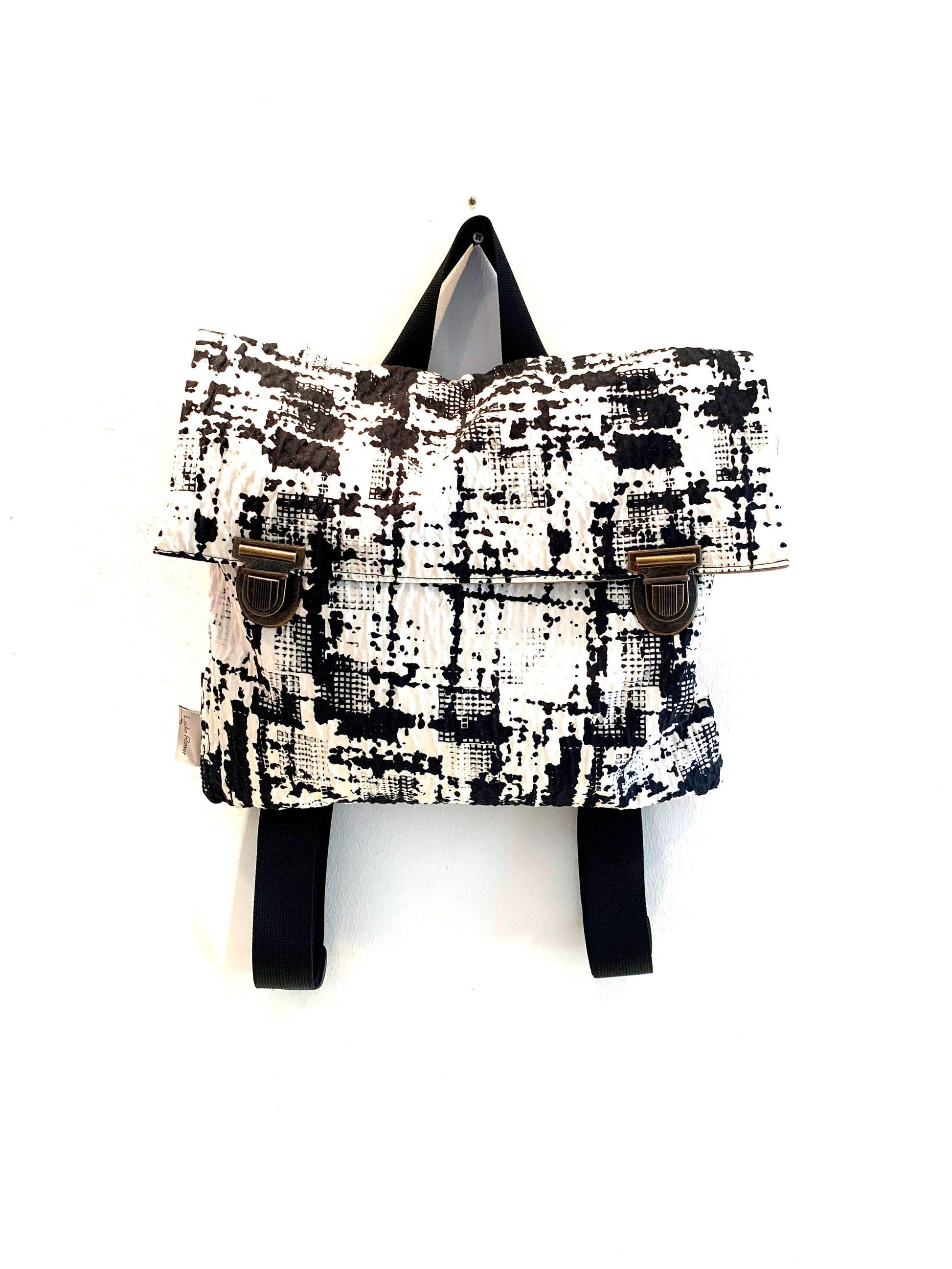 התיק גב ניסגר עם 2 אביזרים מתכת בברונית- טבעוני | 100% עבודת יד| 100% כחול לבן