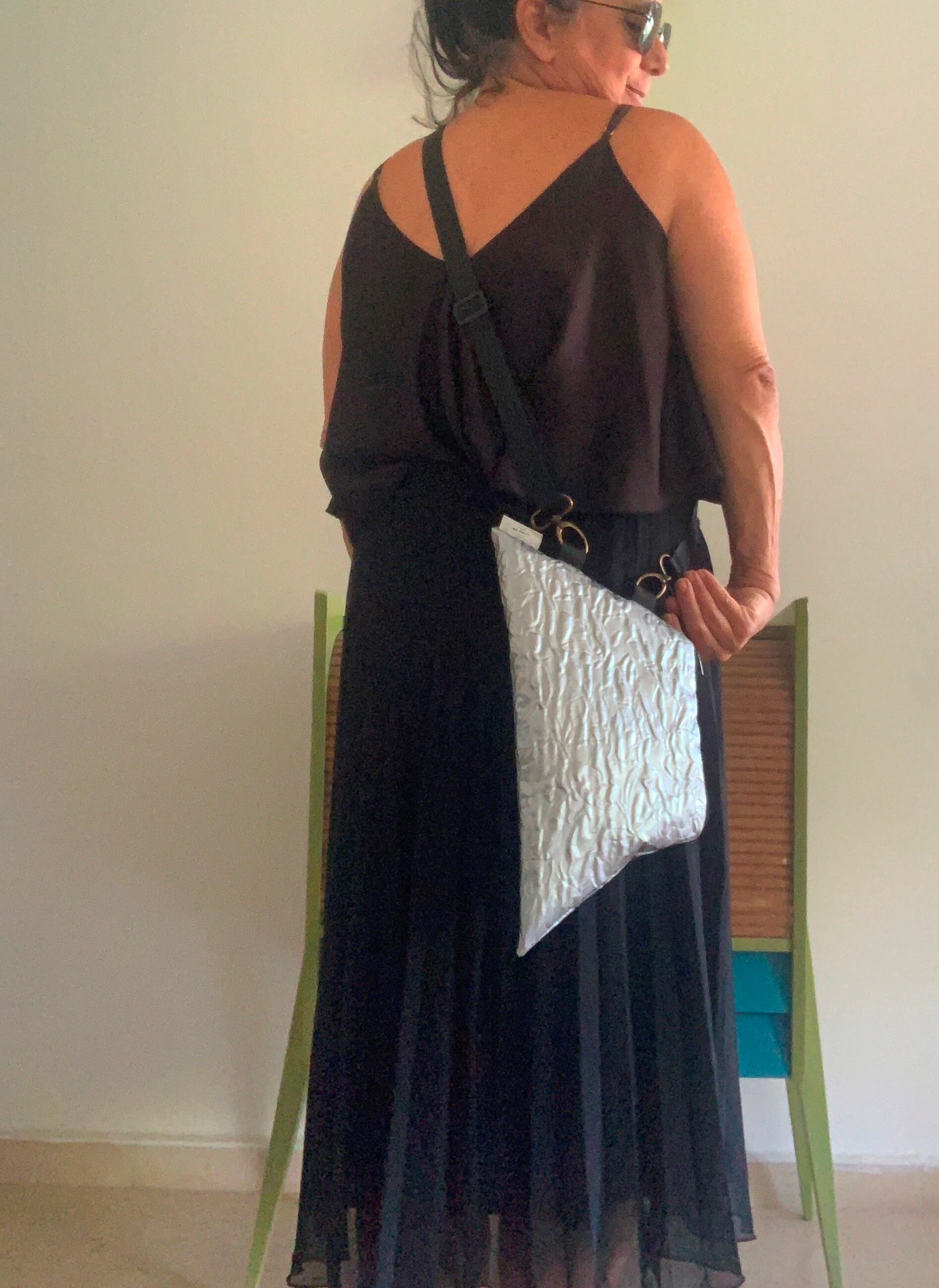 TYVEK- תיק קטן טרפז כסוף ;בד טייבק